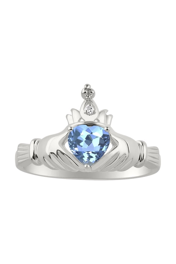 Rings Sterling Silver Claddah Love, Loyalty & Friendship Ring Heart 6MM Gemstone & Diamond Claddagh Rings December Blue Topaz Jewelry Size 5Black and White Diamond Leaf Solitaire Enhancer in 14K White Gold Finish - Diamond Wrap Ring Jacket - Ring For Women - Birthday Ring For Wife From $69.97
