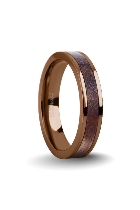 Exotic Dark Walnut Wood Twin Inlay Titanium Wedding Ring, 4mm, Size 10MITSOS Polished 14k Rose Gold Men’s Ring with Black Walnut Wood Inlay - 8mm