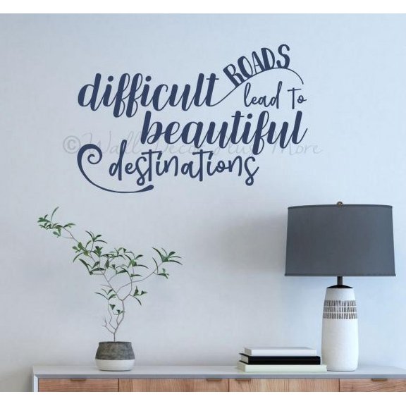 Difficult Roads Lead to Beautiful Destinations - Inspirational Quotes Wall Decals - 17" x 20" - Bedroom Living Room Decor Vinyl Wall Decals - Motivational Quote Wall Decal