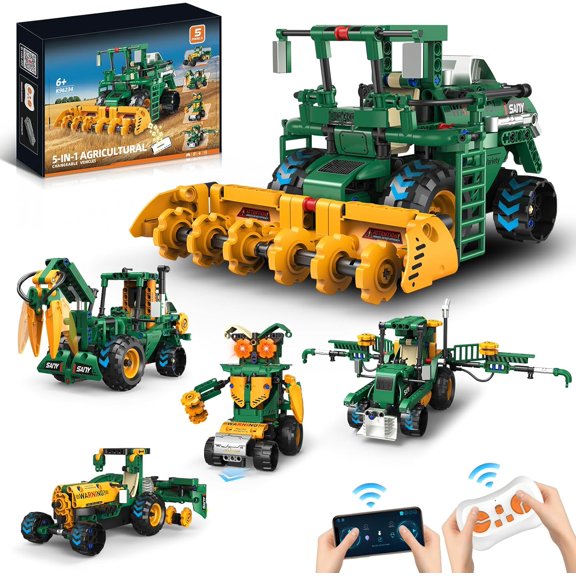 5 in 1 STEM Robot Toys Building Kits for Kids Ages 6-14, App & Remote Control STEM Harvester/Plowing Cart/Water Truck Robot Building Set, Programmable Transformers RC Robotics Gifts for Kids Boys $49.99
