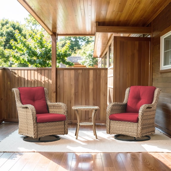 Rollback Opohoro 3-Piece Patio Wicker Swivel Rocking Chairs with Cushions and Tempered Glass Side Table From $299.00