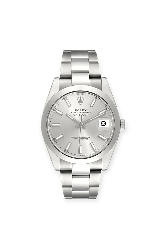 Pre-Owned Rolex Datejust 41 Sliver Dial 126300 Smooth Bezel Steel Mens Watch $9,975.00