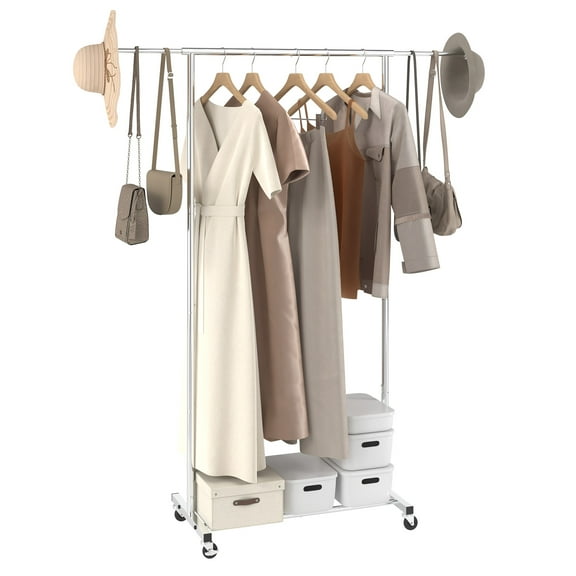 Mainstays Adjustable Metal Rolling Garment Clothes Rack, Chrome & White