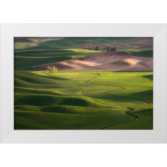 Jones, Adam 14x11 White Modern Wood Framed Museum Art Print Titled - Rural road through rolling wheat fields-Palouse region of eastern Washington State From $29.99