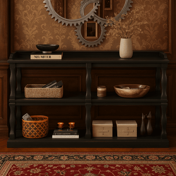 Gold-Accent Black Console / Used in Entryway and Hall / Wide Tabletop for Decor
