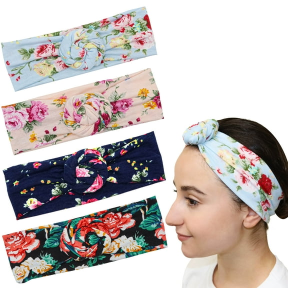 FROG SAC 4 Floral Headbands for Girls, Stretch Flower Headwraps for Teens, Soft Rose Bun Headband for Women, Cute Comfortable Fashion Head Bands $8.95