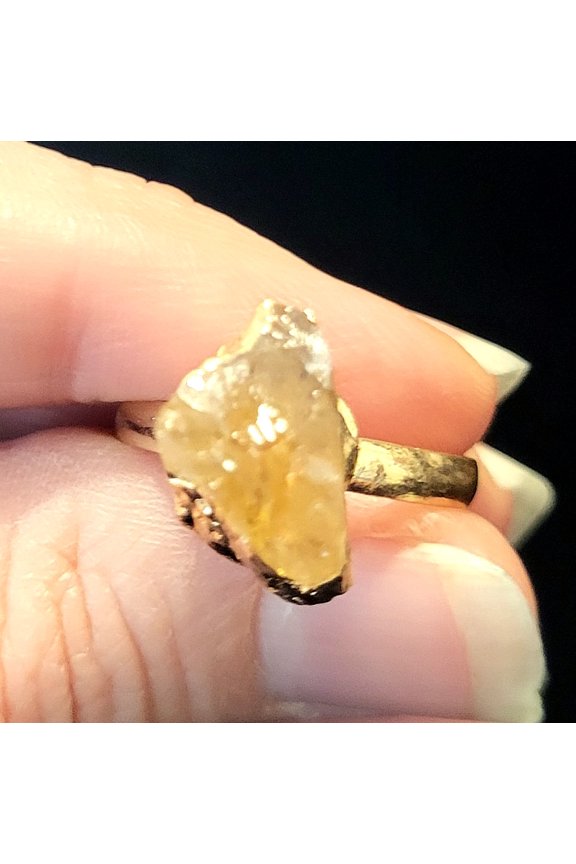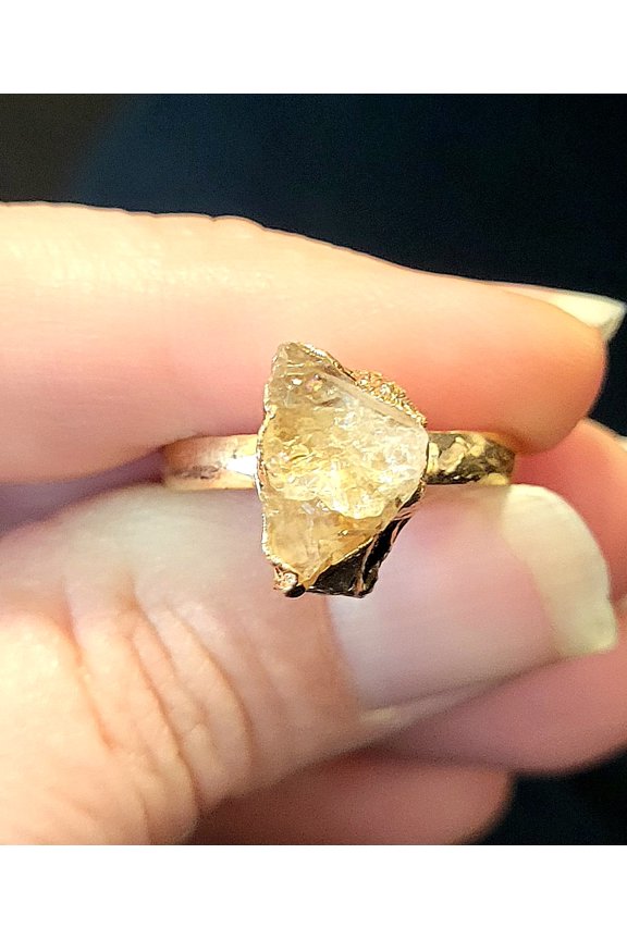 current price $25.00Natural Rough Citrine Gold Adjustable Ring NRCGAR