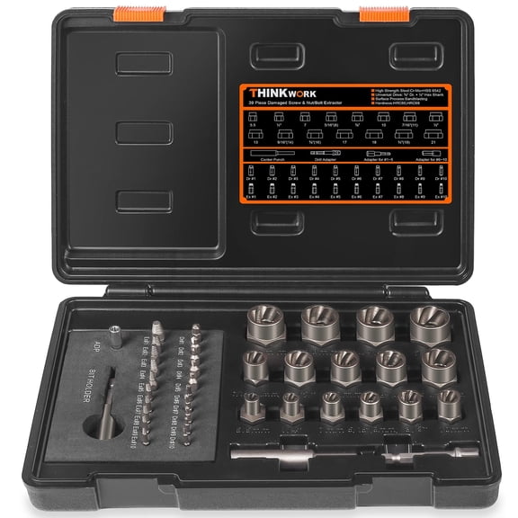 current price $99.92THINKWORK Damaged Screw Extractor Set, 2-21mm, 39-Piece Broken Bolt Extractor Kit, 3/8" Drive Lug Nut Removal Tool, Rounded Bolt Remover for Damaged, Rusted, Rounded-Off, Stripped Fasteners