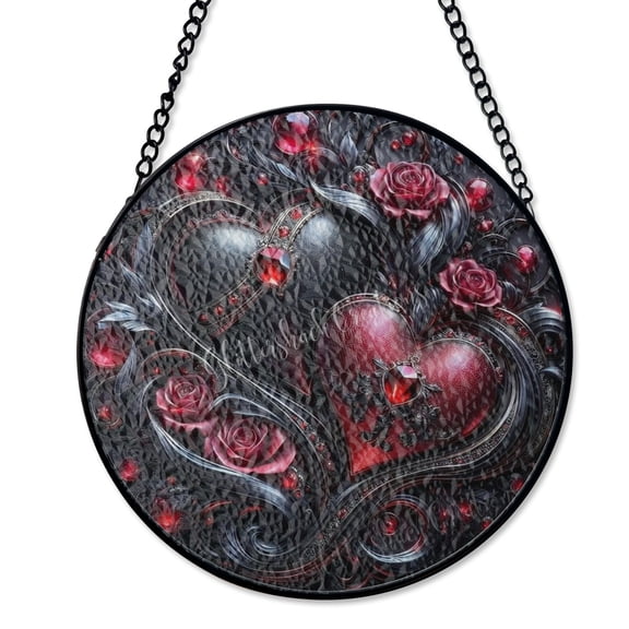 Ornate Ruby Heart Medallion Suncatcher Stained Glass Style UV Printed Valentine Decor Round From $27.59