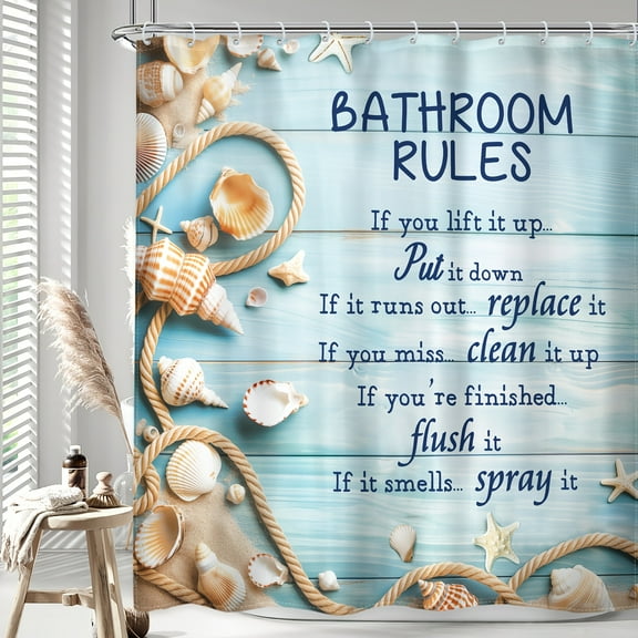 4Pcs Bathroom Rules Shower Curtain Sets, Gray Bathroom Decor Set, Bathroom Wooden Signs Shower Curtain with 12 Hooks, Bath Mat, Toilet Lid Rug and Non-Slip U Shape Mat Accessories, 72 x 72 Inch