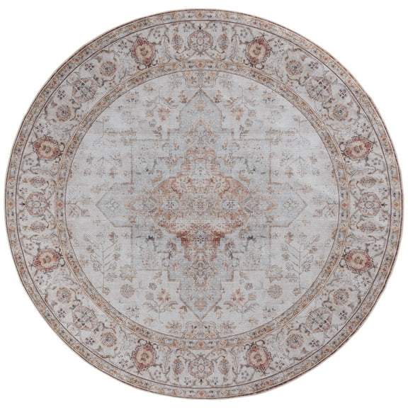 SAFAVIEH Tucson Nazca Oriental Machine Washable Area Rug, Light Grey/Rust, 3' x 3' Round