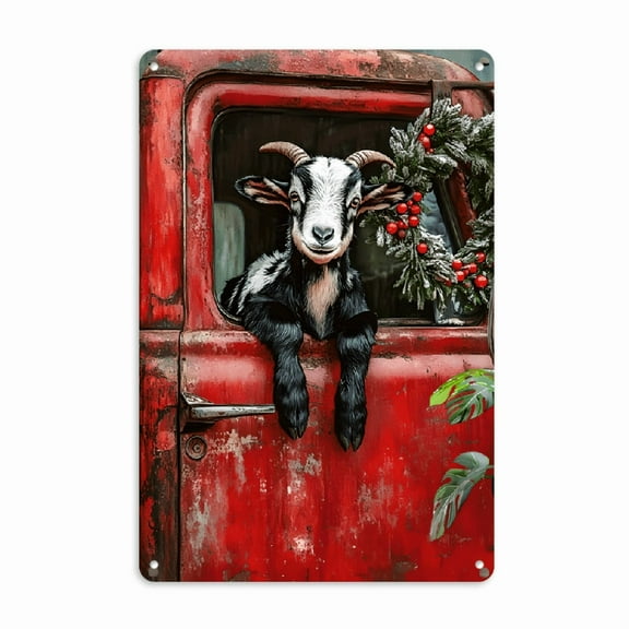 Rustic Goat Christmas iron Sign - 8*12 Inch, Embroidered Metal Wall Plaque, Reusable Artwork for Home Decor, 1pc