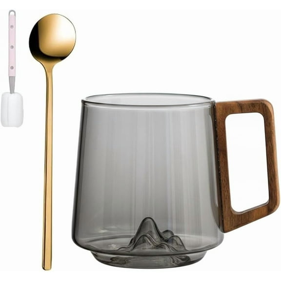 current price $19.991PC Smokey Gray Glass Slanted Coffee Cups with Wooden Handle, Clear Glass Cup for Latte, Cappuccino, Hot & Cold Drinks, Creative Mountain Bottom Cup, Coffee Mug for Kitchen Gift