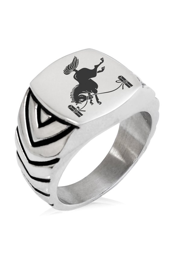 Stainless Steel Soma Samurai Crest Chevron Pattern Biker Style Polished RingStainless Steel Shibata Samurai Crest Chevron Pattern Biker Style Polished Ring From $15.00