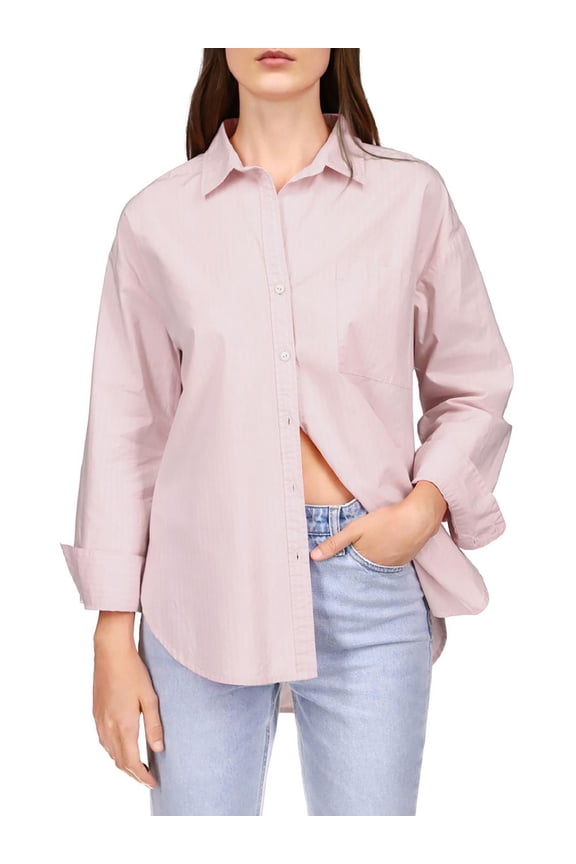 Womens Cotton Collared Button-Down TopWomens Pinstripe Collared Button-Down Top