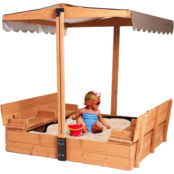 MEDEHOO Kids Sandbox with Lid Sand Box with Cover,Foldable Bench Seats, Adjustable Height Roof,Bottom Liner From $79.99