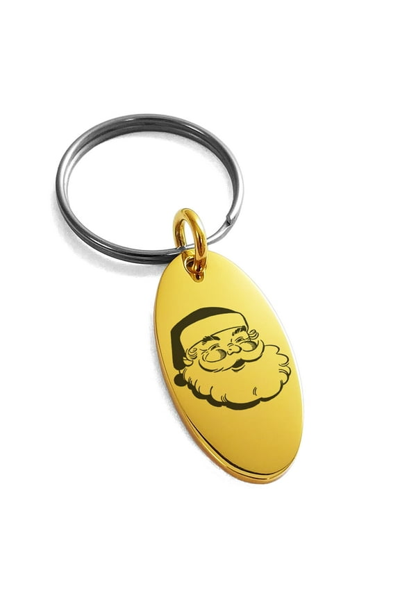 Rose Gold Stainless Steel Classic Hearty Santa Claus Engraved Small Oval Charm Keychain Keyring From $15.00