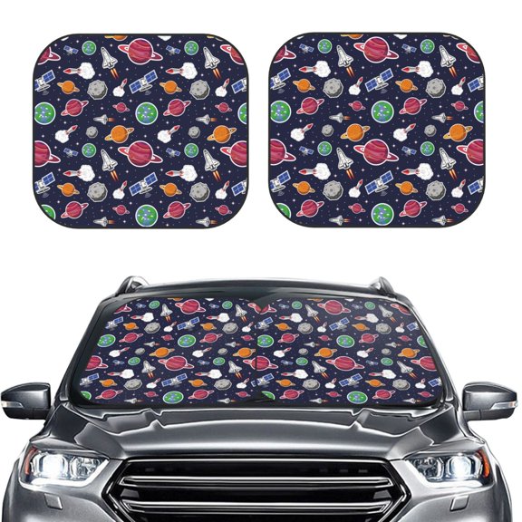 Rateoe Rocket Satellite Pattern 2 Piece Car Windshield Sun Shade Foldable | Front Windshield Shade for Sun, Heat and UV Rays | Sunshade for Car Front Window-Small From $29.99