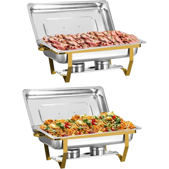 XYJBHB Chafing Dishes for Buffet, 9QT Chafing Dish Buffet Set, Stainless Steel Catering Warmer Server with 2 Full Size Pans for Home Party Wedding Buffets, Gold, 2 Pack From $69.99