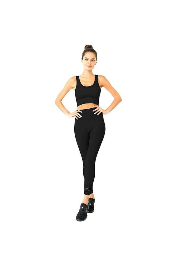 FRATESSA SEAMLESS LEGGINGS & SPORTS TOP SET - BLACKTrois Seamless Sports Bra - Black with Navy $11.95