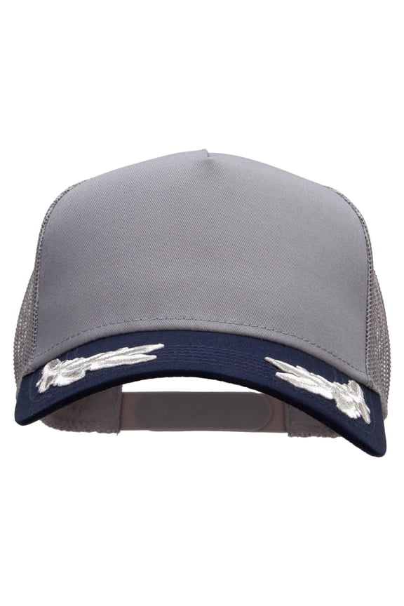 Military Scrambled Eggs Two Tone Cotton Twill 5 panel Mesh Back Cap - Navy Grey Silver OSFMBlack Korea Korean War Veteran Scrambled Eggs Feather Cap Hat C862 $21.25
