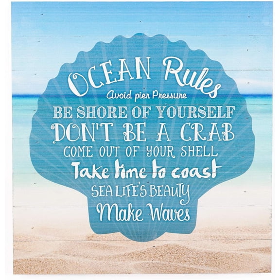 current price $22.95Ocean Rules Seashell Beach Design 12 x 12 Wood Pallet Design Wall Art Sign Plaque