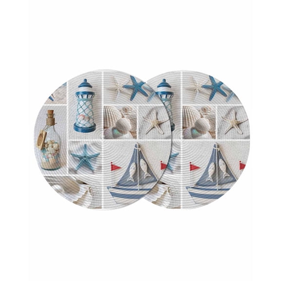 Blue Oceans Beach Round Placemats Set of 2 for Dinning Tables,Heat-proof Braided Table Mats 13 Inch,Nautical Coastal Starfish Seashell Washable Place Mat for Kitchen Restaurant Party Table Decor From $17.60