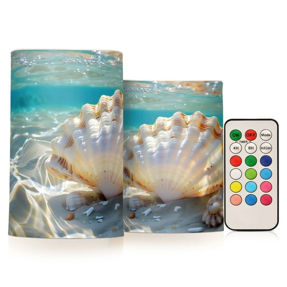 Cartoon Colorful Seashells Flickering Flameless Candles with Remote Timer Battery Operated LED Tealight Set of 2 S From $18.99