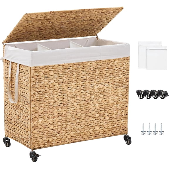 Casa Pura Furniture 2-Section Laundry Hamper with Lid, Water Hyacinth Woven Laundry Sorter with Removable Liners, Rolling or Non-Slip Design From $58.99