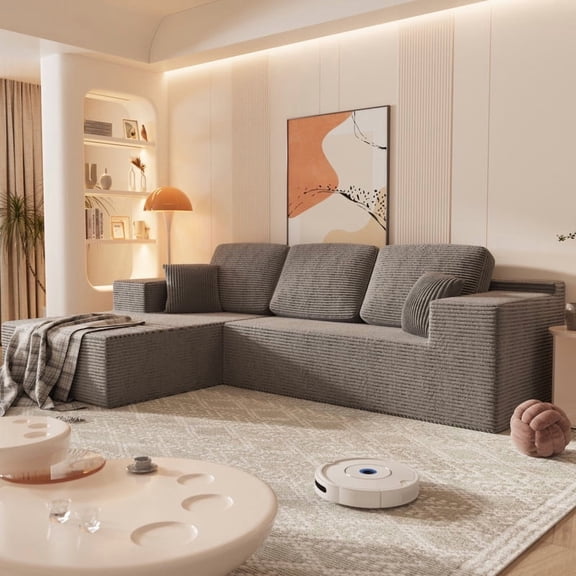 Modern Simple Chenille 4-Seat L-Shaped Sofa with Storage and Cylindrical Backrest 220cm$1034.42current price $1034.42107'' Modern L-Shape Sectional Couch – Plush Corduroy Fabric, No Assembly, Ideal for Living Room & Bedroom
