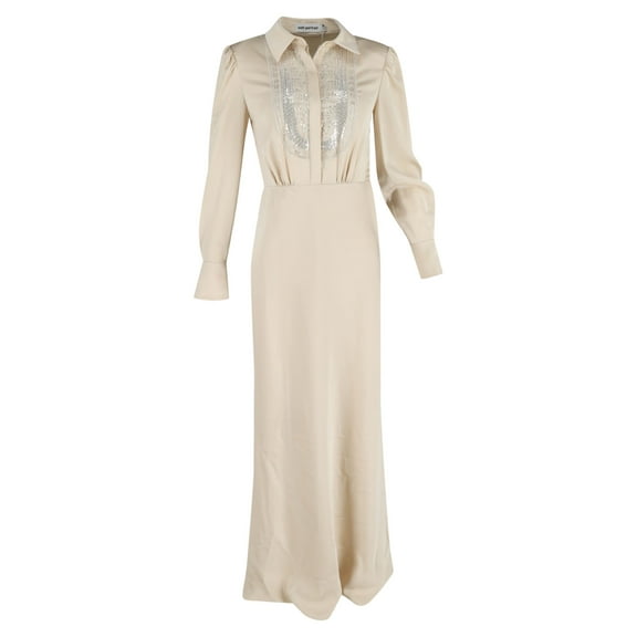 Pre-Owned Self-Portrait Embroidered-Design Maxi Dress in Cream Satin $385.00
