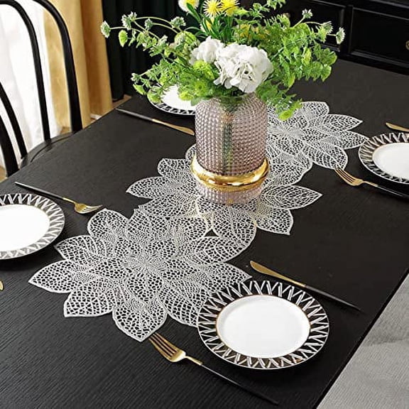 LINLIN Leaf Shaped Placemats PVC Hollow Table Runner Non-slip Decorative Table Mats Placemat for Home Party Kitchen Dining Wedding Decor From $31.99