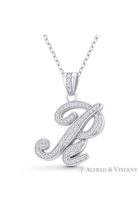 Initial Letter "R" Cursive Script Cubic Zirconia CZ Crystal Pendant in .925 Sterling Silver w/ Rhodium From $36.99