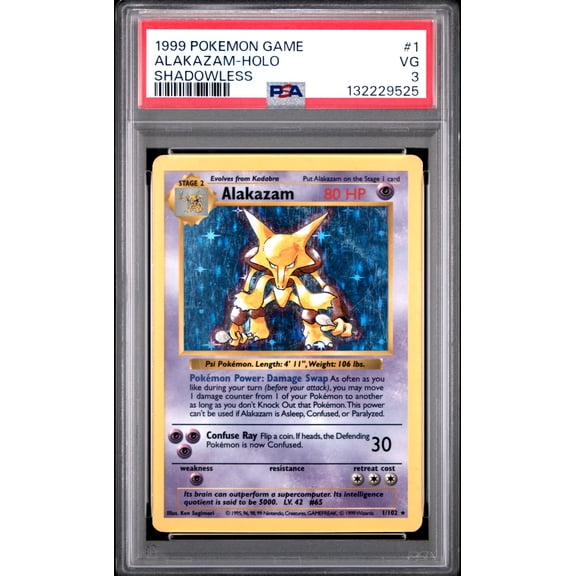 current price $118.001999 Pokemon Game Alakazam #1 Shadowless PSA 3