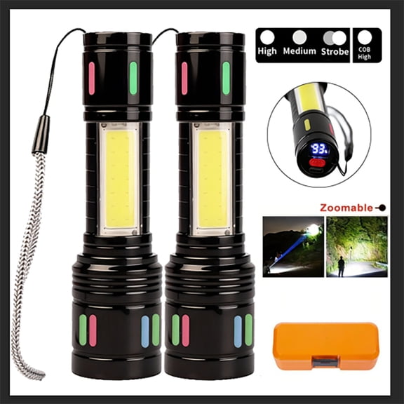 Jercoda 2pcs Flashlights with Side Light, Rechargeable Flashlight with 4 Modes, Zoom Flashlights with Storage Box, Set of 2 From $17.99