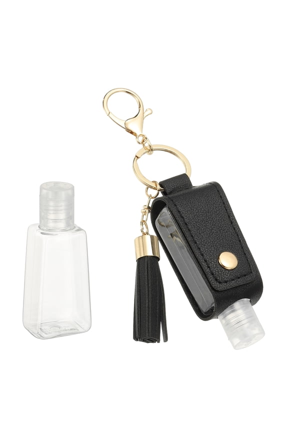 Portable Travel Empty Bottle with Keychain, 30ml PU Leather Mini Squeeze Bottles, Hand Liquid Refillable Container Travel Size for Toiletry Lotion Shampoo Liquid Soap, Black5pcs Travel Clear Keychain Bottles - Leakproof Refillable Containers for Shampoo