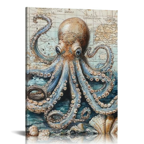 FCXZI Octopus Sea Shells Map Canvas Print Wall Art Home Decor 12x16in From $19.99