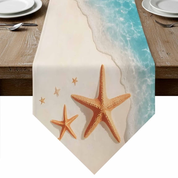 Ocean Starfish Table Runner Linen Burlap Table Runner 36 Inches Small Beach Shell Shore Waves Summer Sea Dresser Scarves for Kitchen Island Coffee Dining Party Wedding Banquet Holiday Decor 13"x36" From $15.99