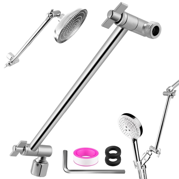 12 Inch Shower Arm Extender, Adjustable Stainless Steel Shower Head Extension Arm with 360 Degree Swivel and Locking Nut, Universal G1/2 Chrome $16.99