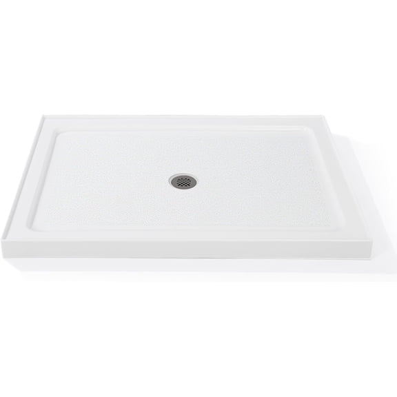 current price $375.00Sunny Shower 60" L x 32" W x 4" H White Anti-slip Acrylic Center Drain Rectangular Shower Base