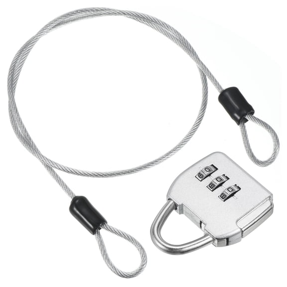 Uxcell 3 Digit Combination Padlock Steel Security Cable 1.6Ft Travel Chain Lock, Silver