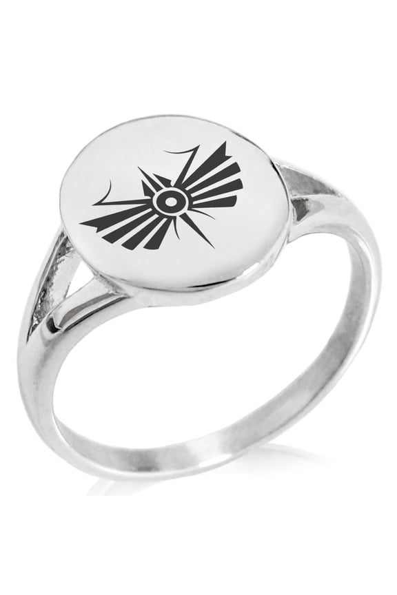 Stainless Steel Tribal Dragonfly Rune Minimalist Oval Top Polished Statement Signet RingStainless Steel Tribal Dragonfly Rune Engraved Hexagon Crest Flat Top Biker Style Polished Ring From $15.00