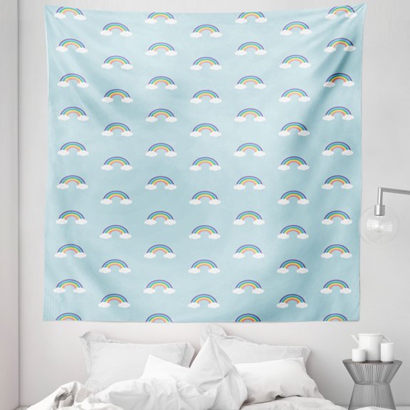 Rainbow Tapestry, Simplistic Cartoon Clouds Repetitive Illustraiton, Fabric Wall Hanging Decor for Bedroom Living Room Dorm, 5 Sizes, Pale Blue Blue Violet, by Ambesonne From $28.99