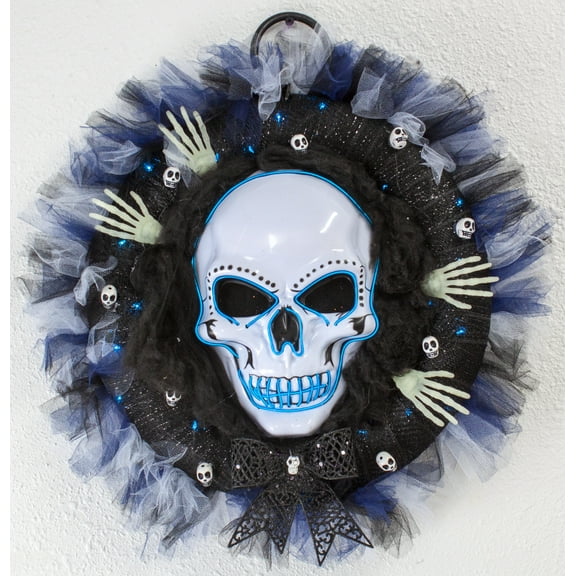LED Lighted Skeleton Halloween Wreath with Glow in The Dark Hands and Door Hanger $99.99