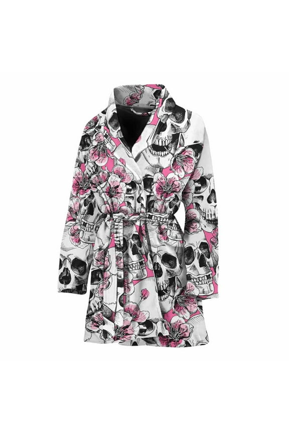 Hooded Fleece Bathrobe with Removable Belt and Pockets Soft and Absorbent for Home, Pool, Beach, Halloween, and Christmas Wear Various Ghost ShapesHooded Fleece Bathrobe with Removable Belt and Pockets Soft and Absorbent for Home, Pool, Beach, Halloween, and Christmas Wear Pink and Black Skulls