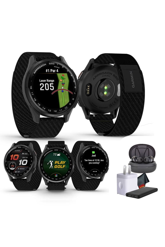 Approach S50 Advanced Golf Watch with GPS, AMOLED Display, Sports and Fitness Smartwatch, Slate Aluminum Bezel with Black ComfortFit Nylon Band Bundle With Wireless Air BudsFreedom 5 Mens Shoes Size 9.5, Color: Slate/Black From $67.32