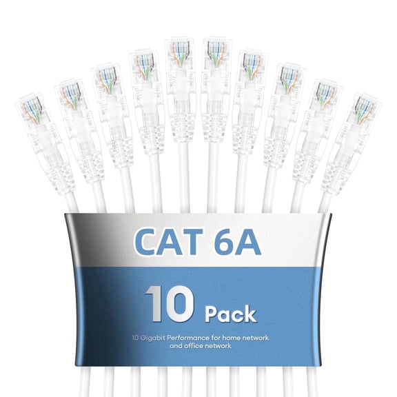 Dutevolns Cat6A Ethernet Patch Cable 4.92 FT (10 Pack), Slim Cat 6 Patch Cables 10Gbps 550Mhz, UTP Pure Copper Patch Cables Cat6, Flexible Thin Cat6a Patch Cable for Network Devices Setup From $12.99