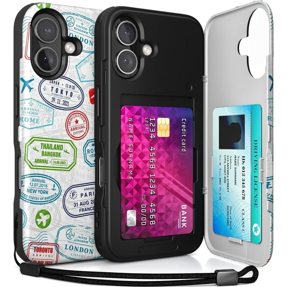TORU CX SLIM for iPhone 16 Case Wallet | Protective Shockproof Heavy Duty Cover with Hidden Card Holder & Card Slot | Mirror & Wrist Strap Included - Travel Stamps From $17.99