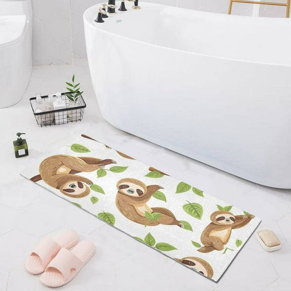 current price $25.99Bath Mat Soft Plush Non-Slip Absorbent Bathroom Rugs 39"x20" Cutes Sloth with Leaf