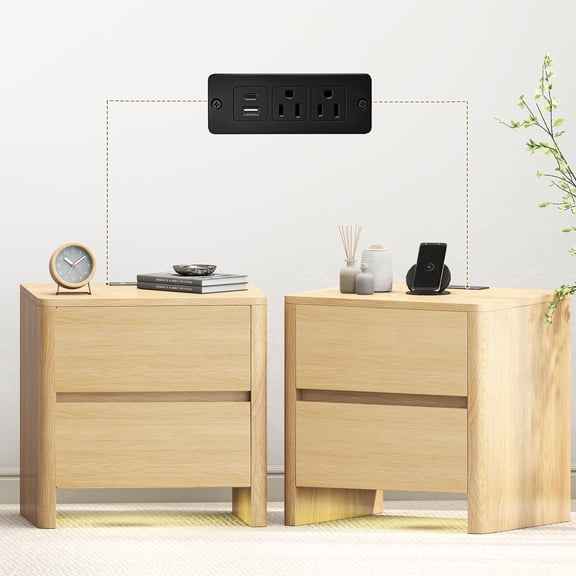Palifte Smart LED Nightstand Set of 2 with Charging Station - Natural Oak Bedside Tables with 2 Drawer and Elevated Bottom Design, for Living Room/Bedroom From $119.00